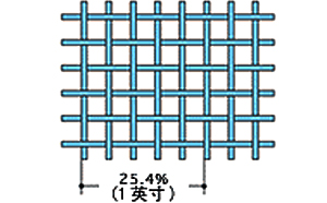不銹鋼絲網(wǎng)的規(guī)格用目數(shù)(Mesh)來表示。目數(shù)是表示鐵絲網(wǎng)孔數(shù)的單位,平紋時(shí),指1英寸間1列的網(wǎng)眼數(shù)。目數(shù)越大,網(wǎng)眼越密。但是,請注意,即使是相同目數(shù),由于線直徑不同,孔徑面積也會(huì)有差異。左圖中1英寸間1列有5個(gè)網(wǎng)眼,是5目的篩網(wǎng)。