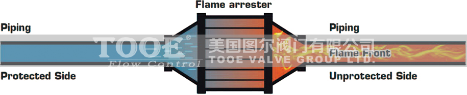 阻火器由能夠通過氣體的許多細(xì)小通道孔隙所組成。這些通道或孔隙要求盡量小,小到能使火焰被熄滅。阻火器的原理是傳熱作用和器壁效應(yīng)。